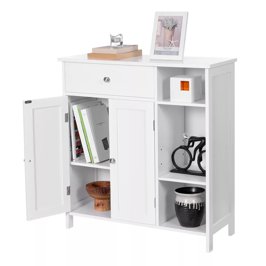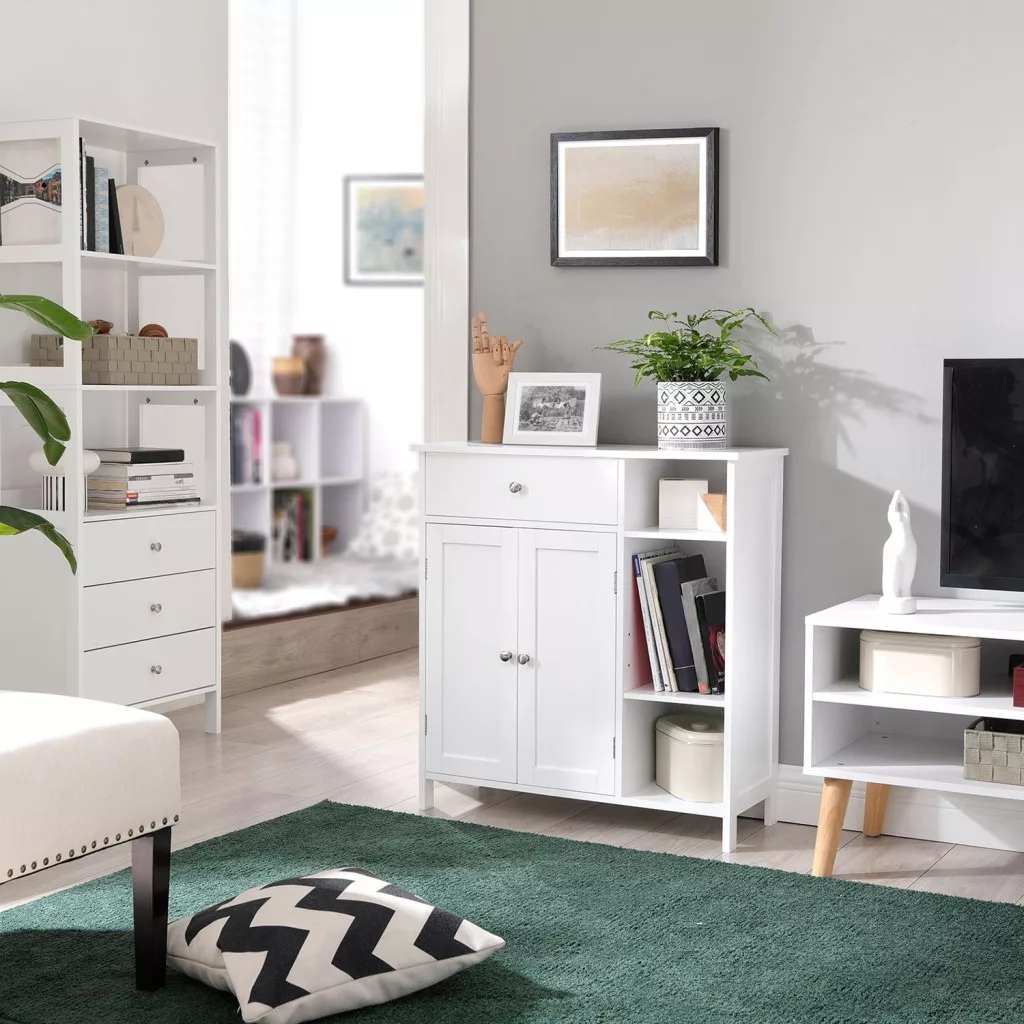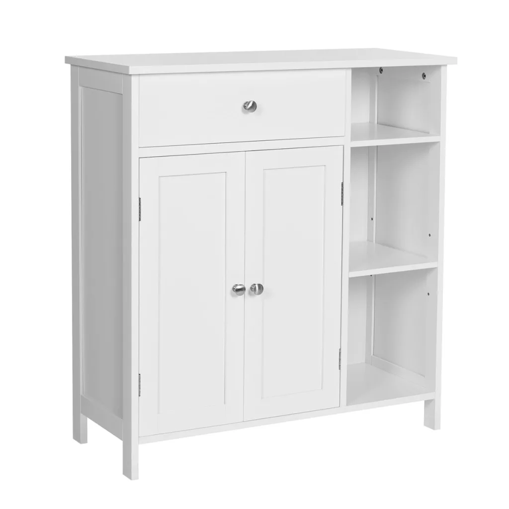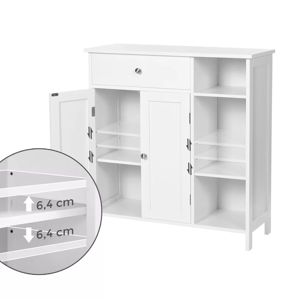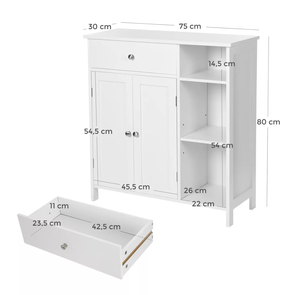 VASAGLE Fürdőszoba szekrény, fiókkal, két ajtóval, skandináv stílusú, matt fehér 75x30x80cm