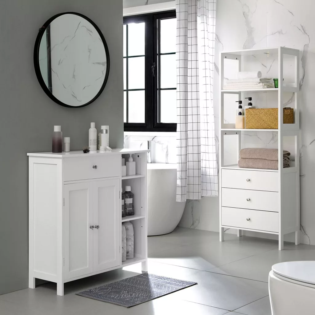 VASAGLE Fürdőszobai Állószekrény, Tároló Szervező Egység, Fiókos Szekrény, 3