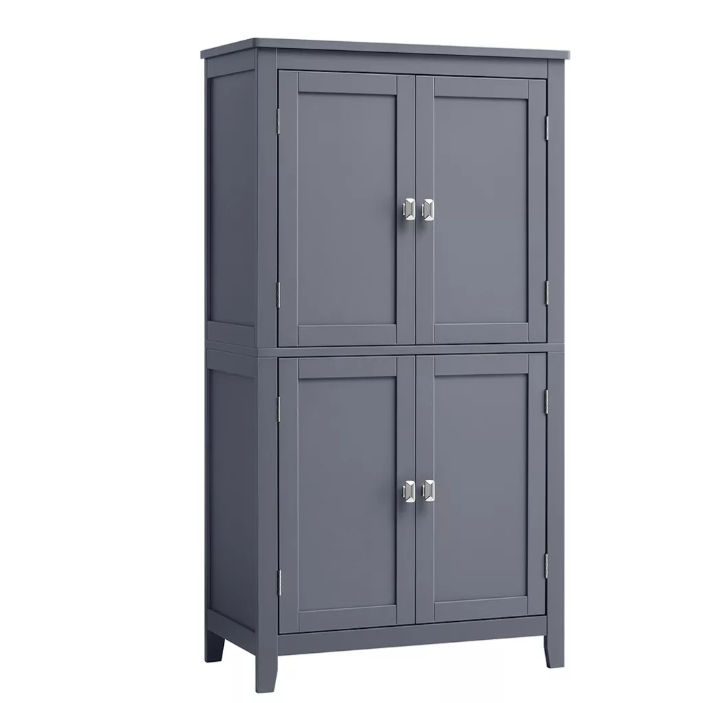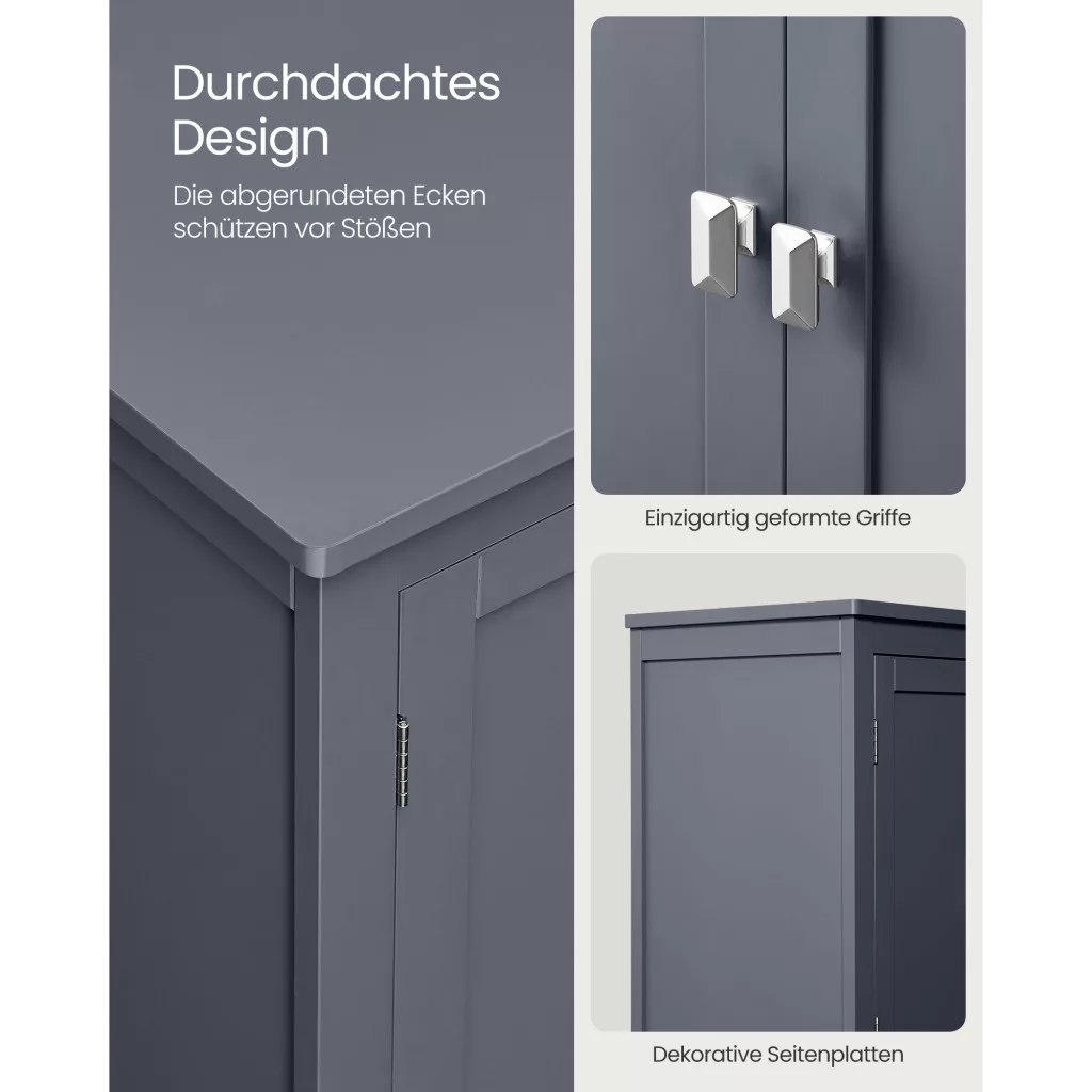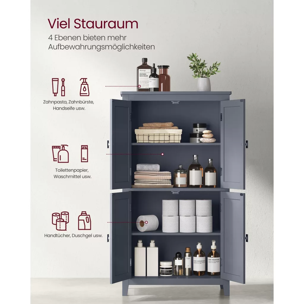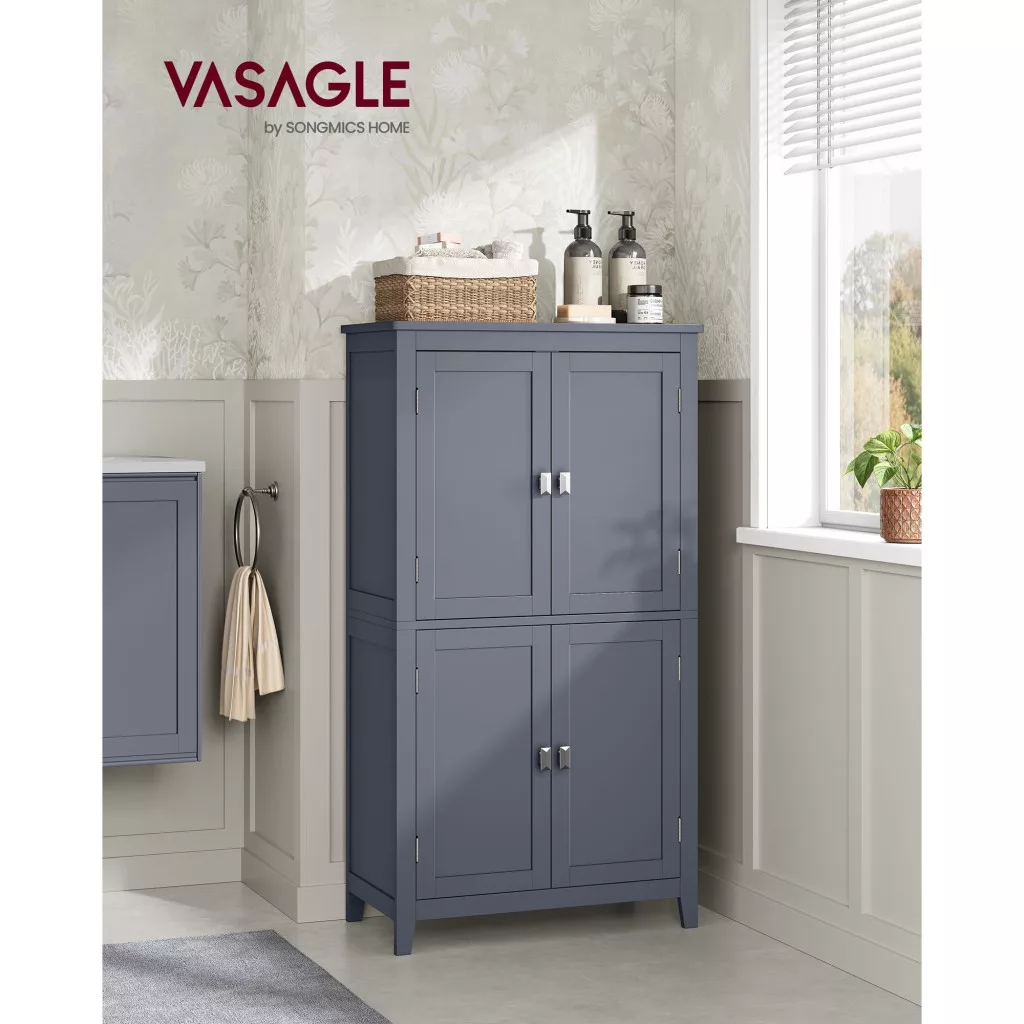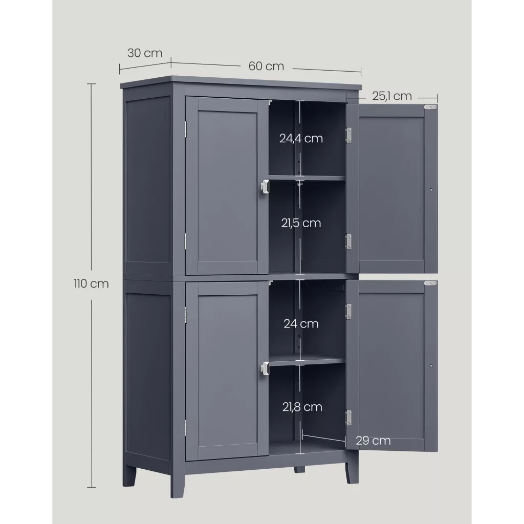 VASAGLE Fürdőszoba szekrény, tároló szekrény négy ajtóval, szürke 60x30x110cm