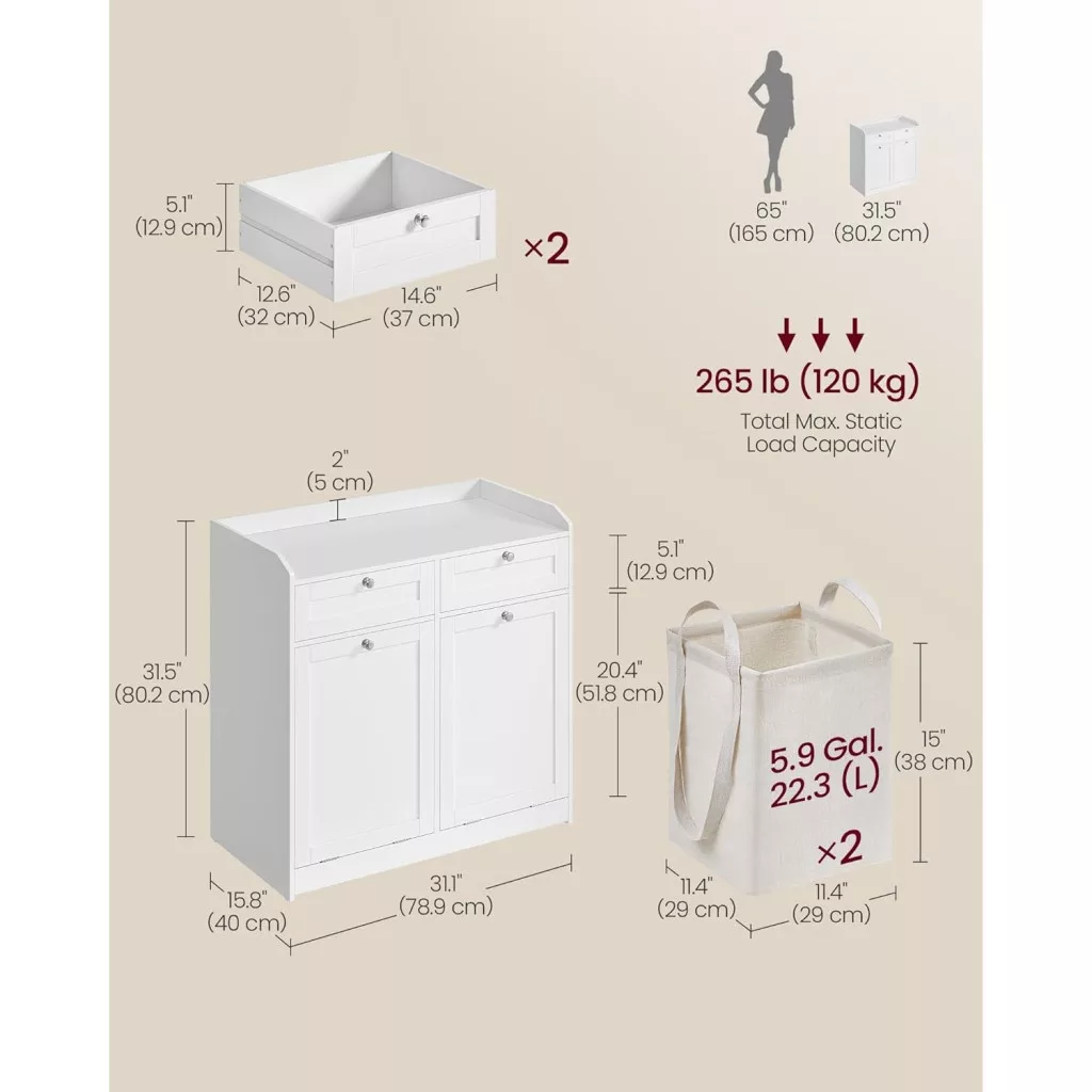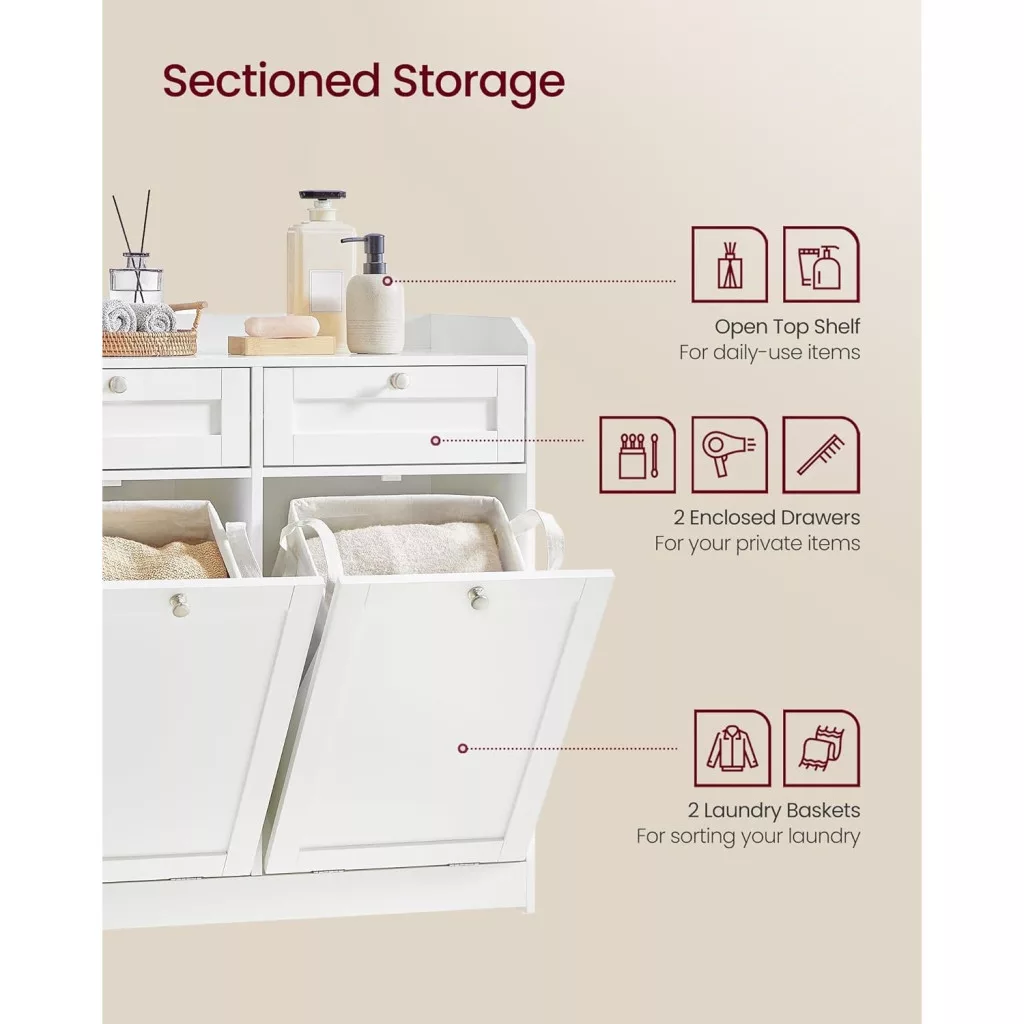 VASAGLE fürdőszobai szekrény szennyestartó kosarakkal, fürdőszobai tárolóegység 2 fiókkal