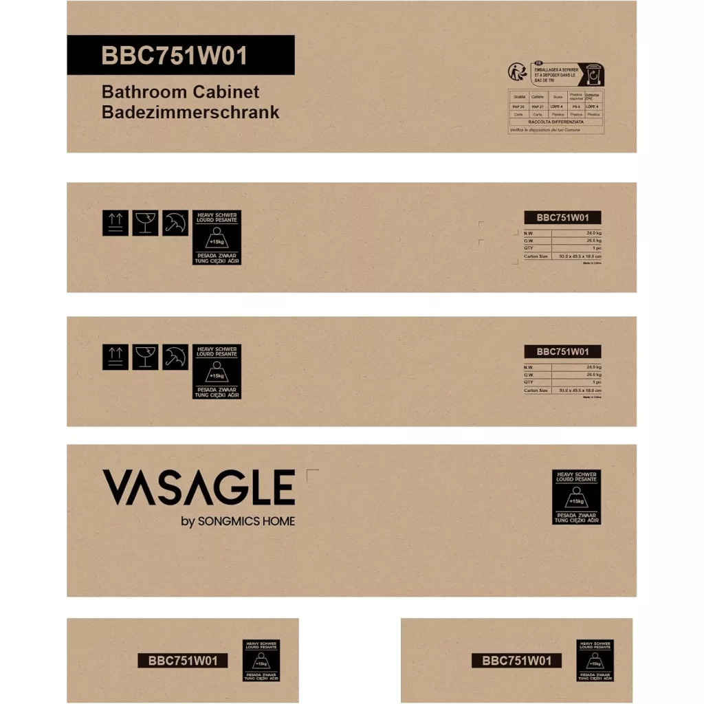 VASAGLE VASAGLE fürdőszobai szekrény szennyestartó kosarakkal, fürdőszobai tárolóegység 2 fiókkal és 2 szennyestartóval, levehető szennyestartó kosarak fogantyúkkal, 40 x 78,9 x 80,2 cm, felhőfehér BBC751W01