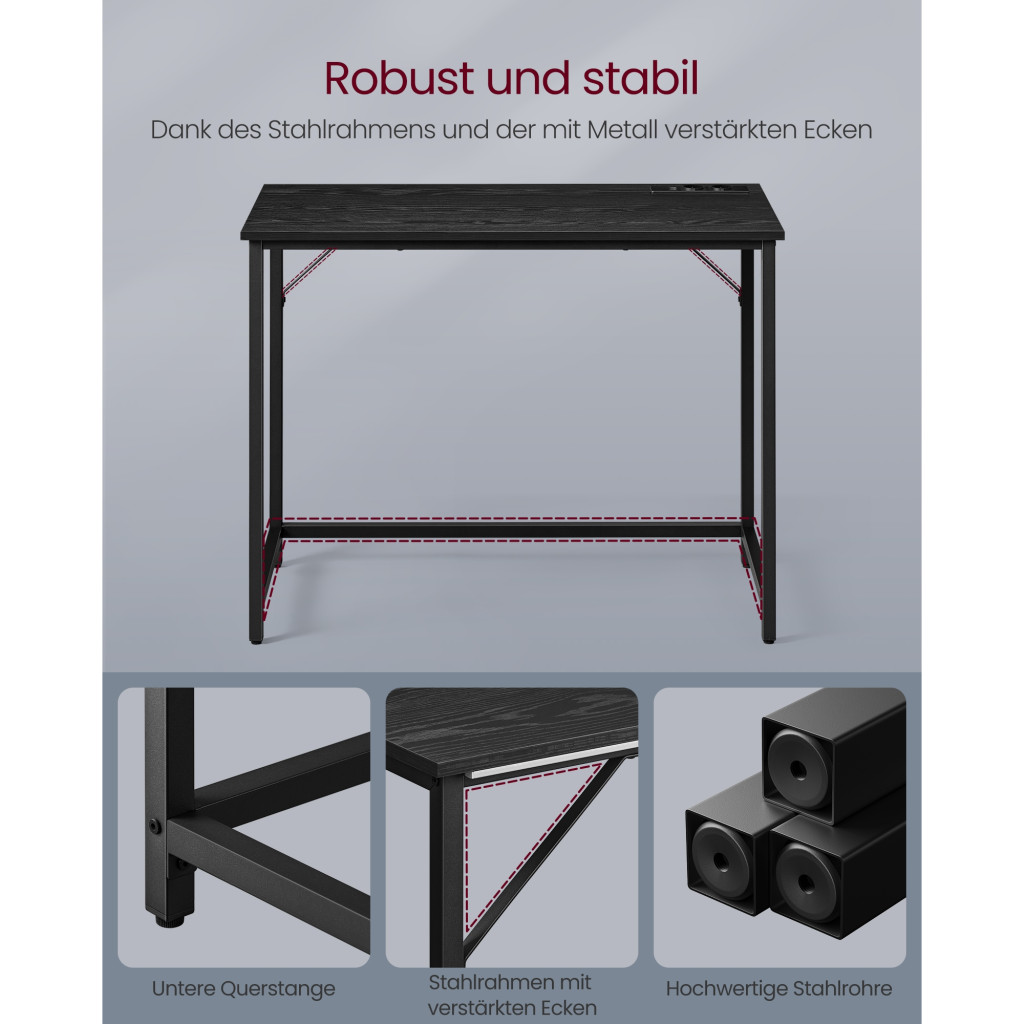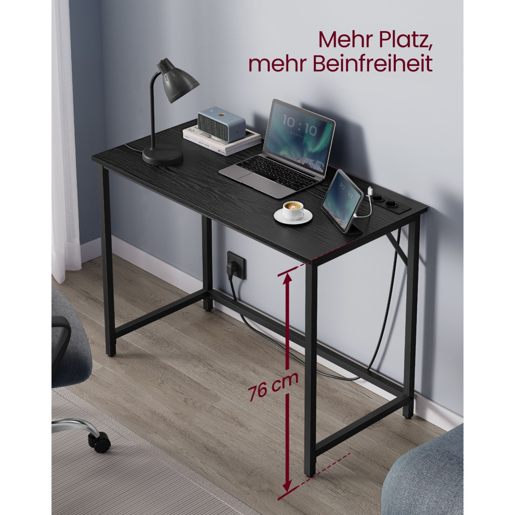 Kényelmes beépített elosztó: 2 elektromos aljzattal, 2 USB porttal és egy 2 m-es tápkábellel felszerelve ez a számítógépasztal megkönnyíti a telefon, laptop stb. töltését.