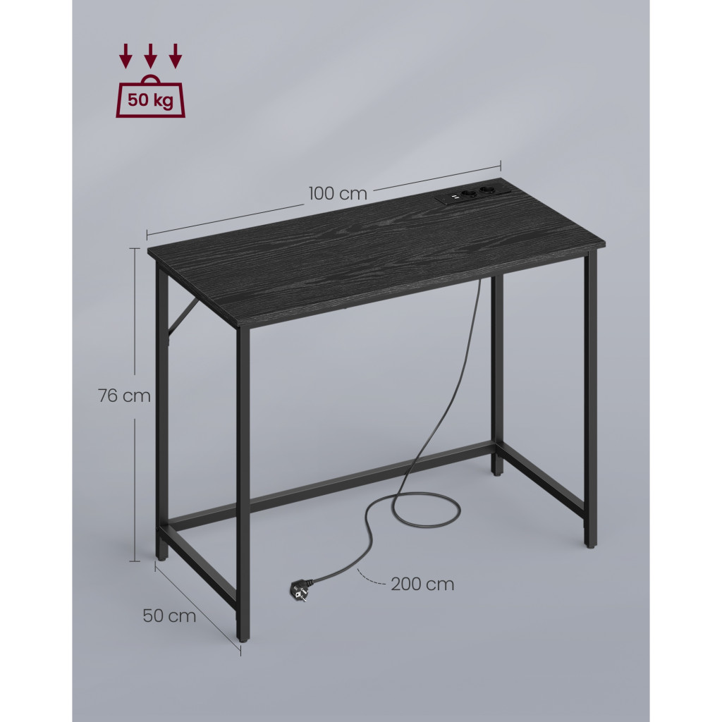 VASAGLE íróasztal, számítógép asztal, beépített elosztóval, LED fényekkel, ébenfekete 100x50x75cm