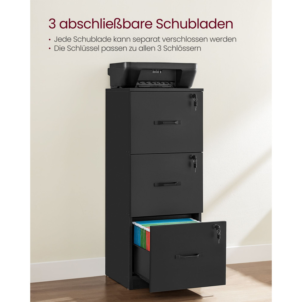 VASAGLE 3-fiókos függőleges irattartó szekrény, iratszekrény otthoni irodába,