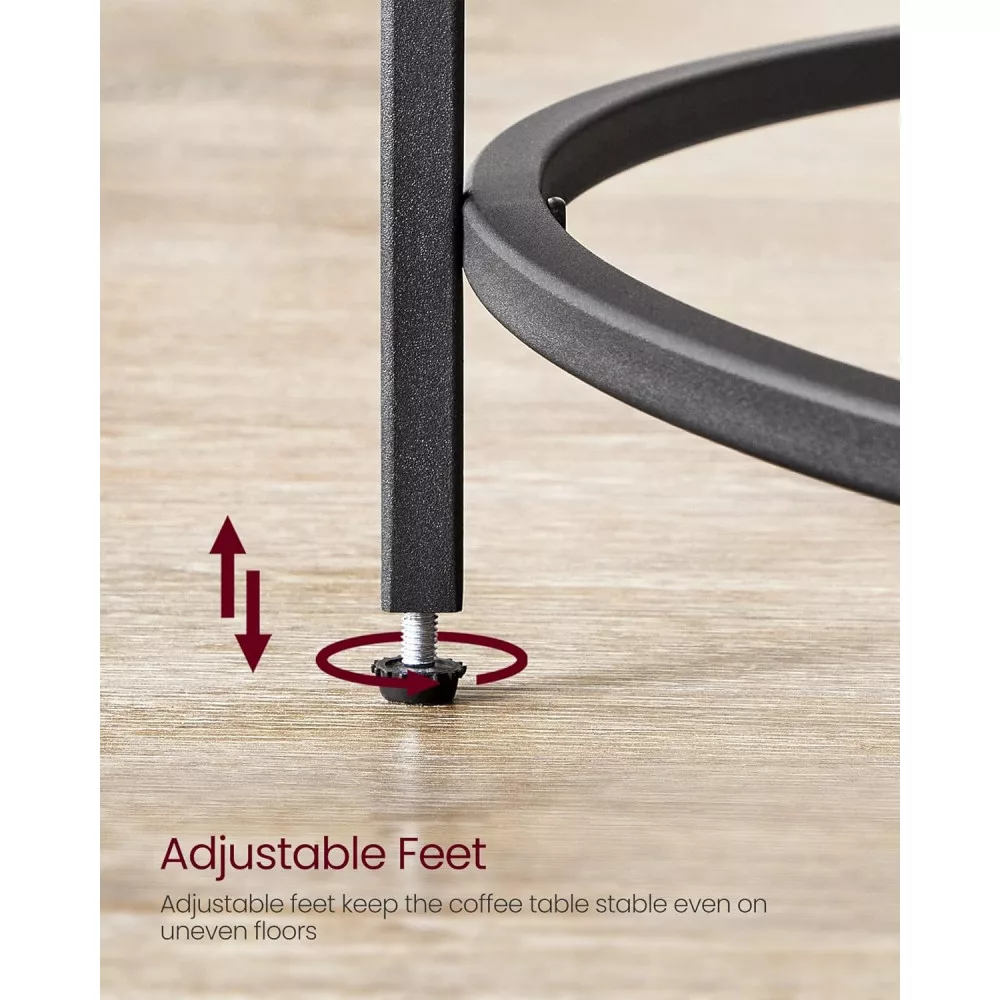 Állítható Lábak: Akár szőnyegre, akár keményfa padlóra szeretnéd helyezni ezt a dohányzóasztalt, az állítható lábak kompenzálják a kisebb egyenetlenségeket és megvédik a padlót a karcolásoktól.