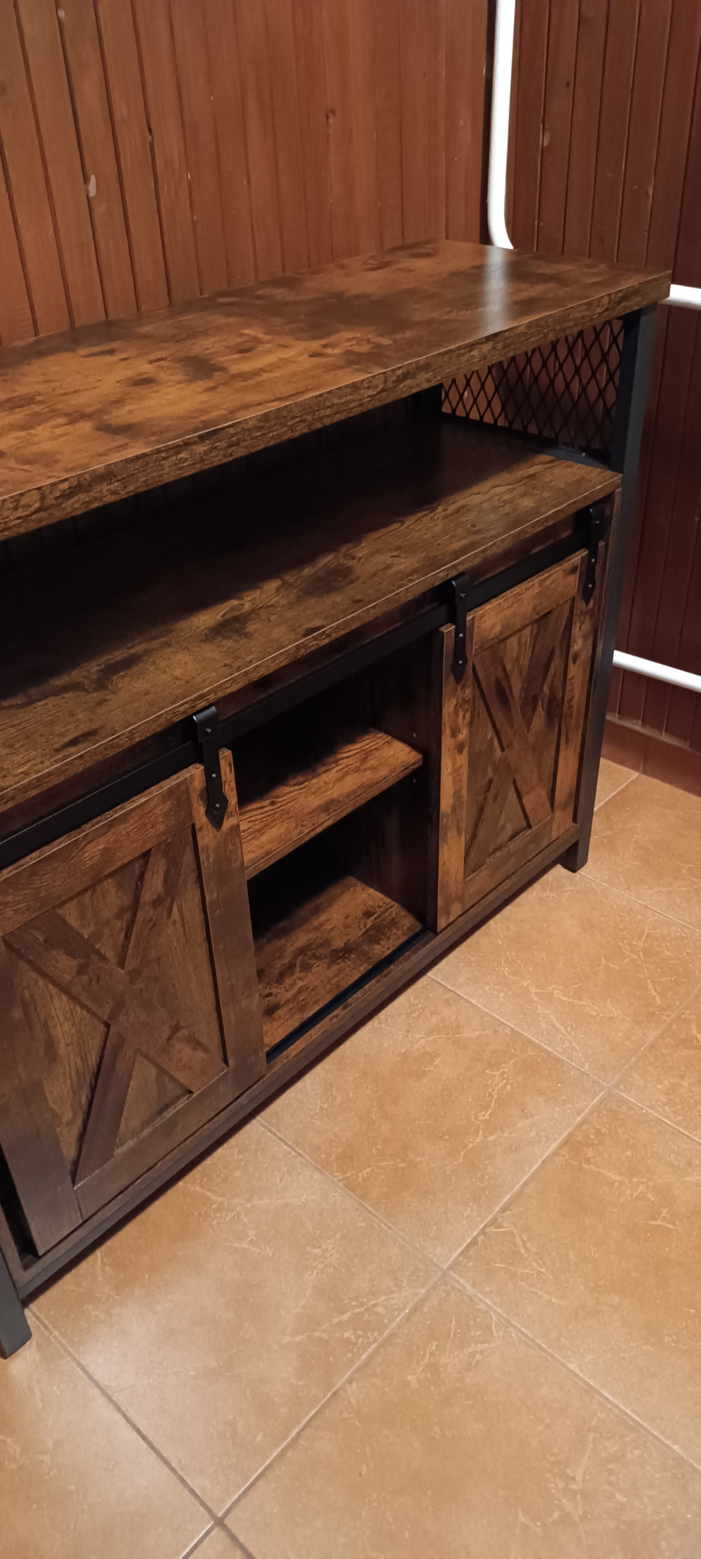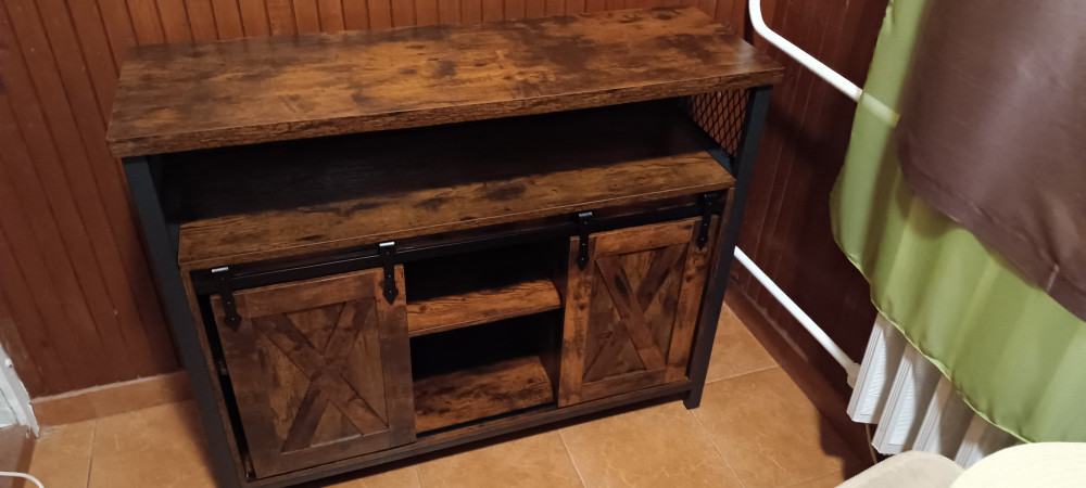 Komód elhúzható ajtókkal és nyitott polcokkal, rusztikus barna 100x33x80cm
