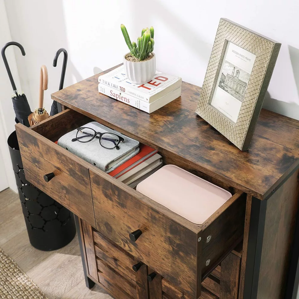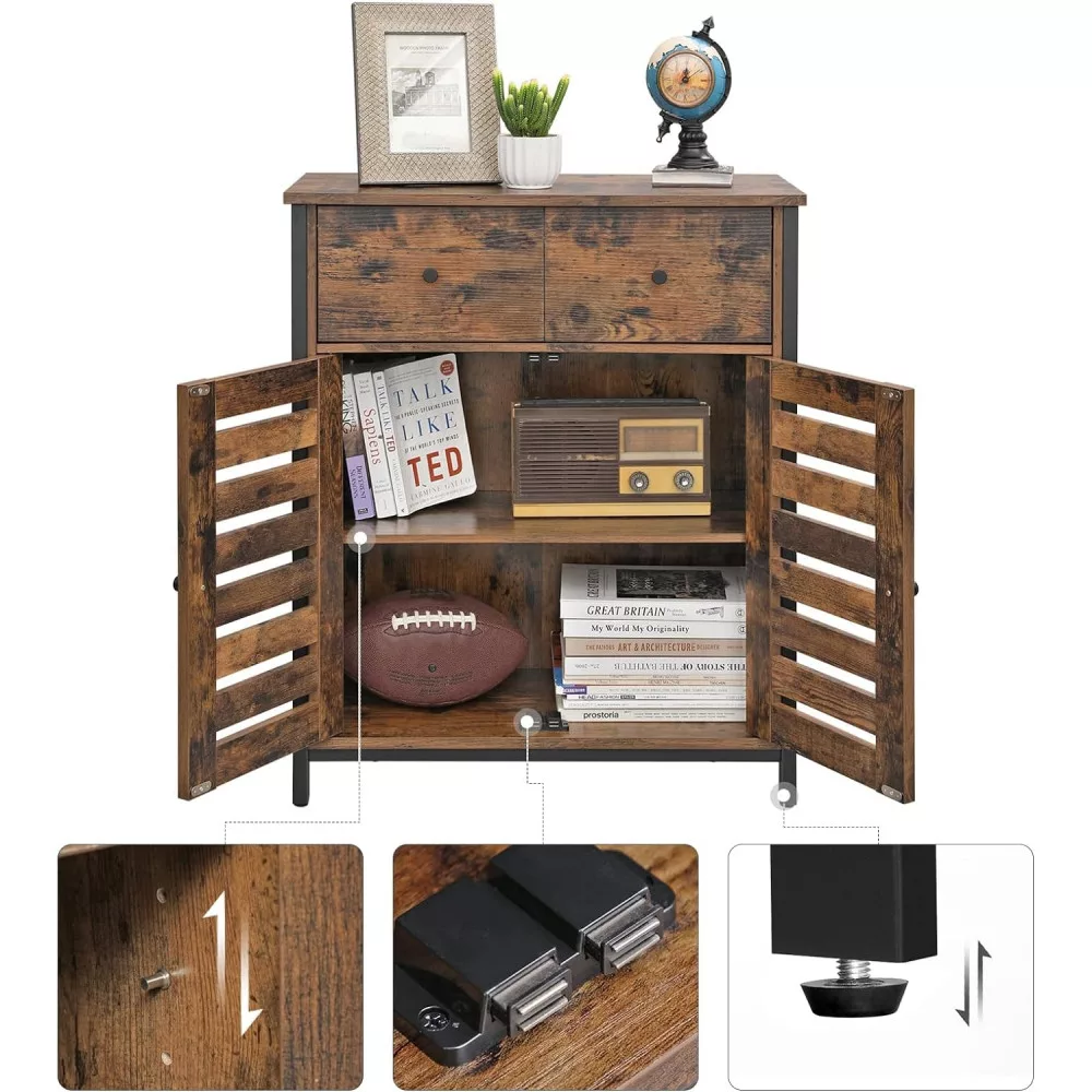 VASAGLE Komód két ajtóval és fiókokkal, rusztikus barna 68x30x80cm