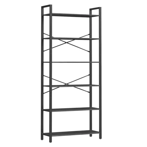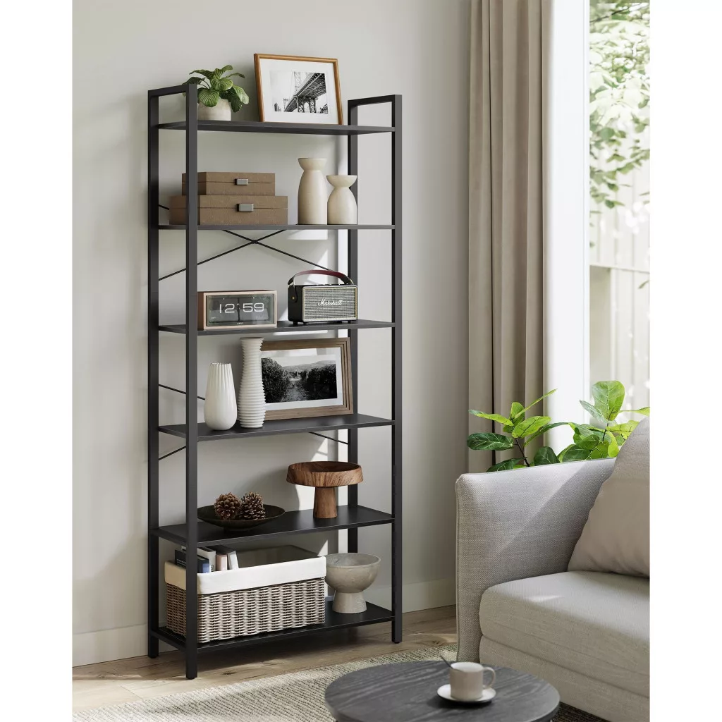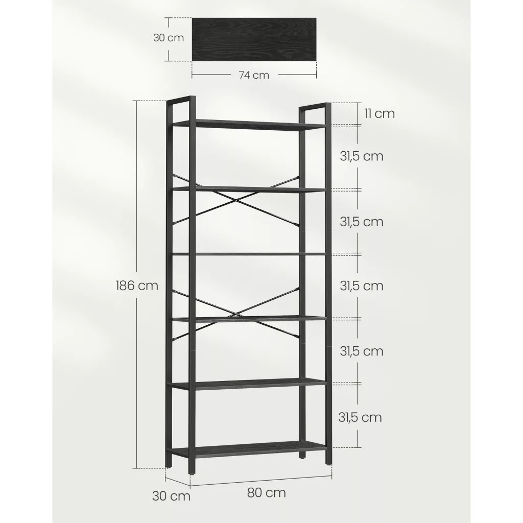 VASAGLE Könyvespolc, álló polc, 6 szintes, ébenfekete 80x30x184cm