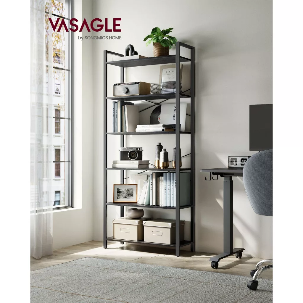 VASAGLE 6 szintes magas könyvespolc, nagy könyvszekrény, acélkeret, szabadon álló