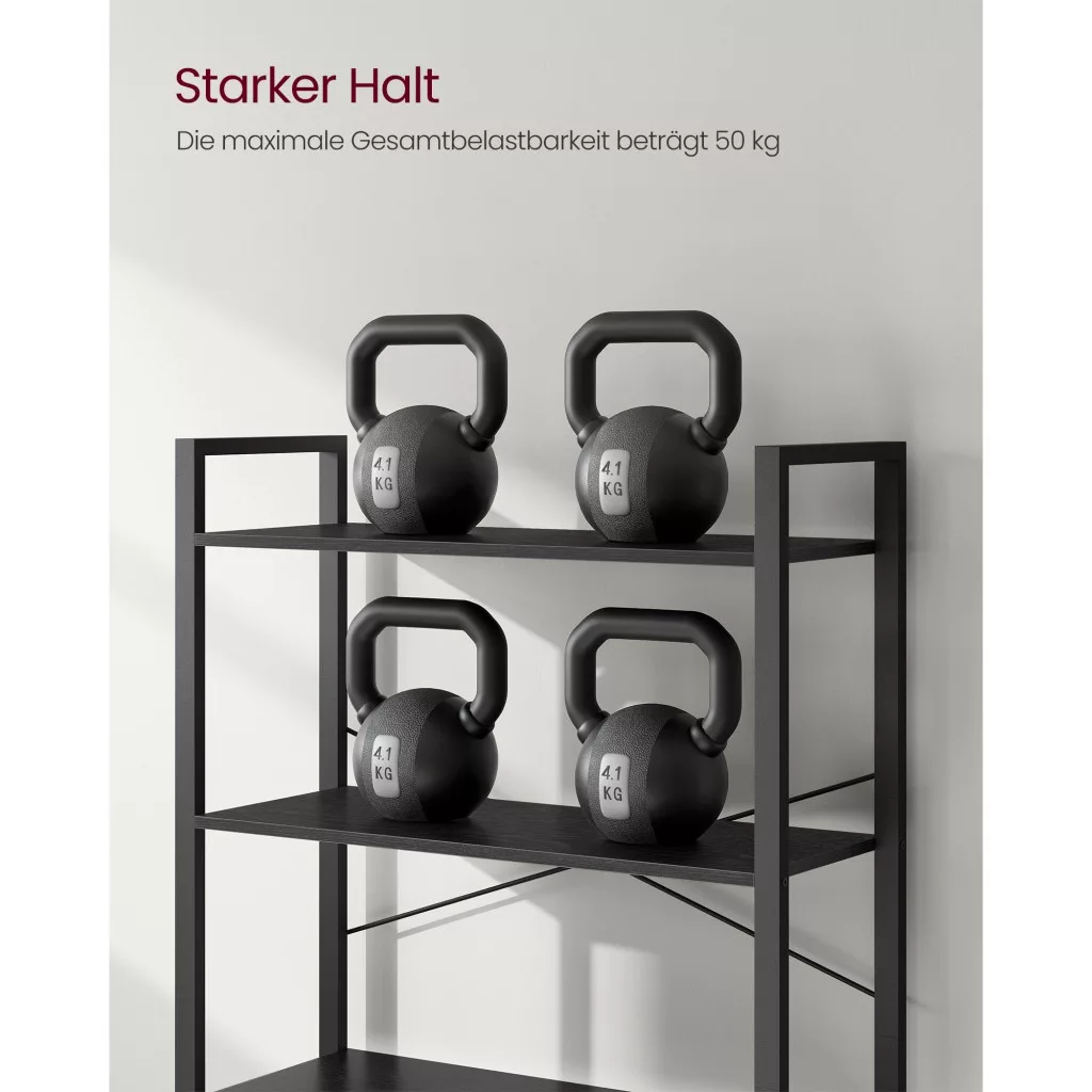 Tartós kialakítás: Minőségi forgácslap és masszív acélkeret kombinációjával ez a 6 szintes könyvespolc maximális teherbírása 50 kg, így évekig megbízható támogatást nyújt.