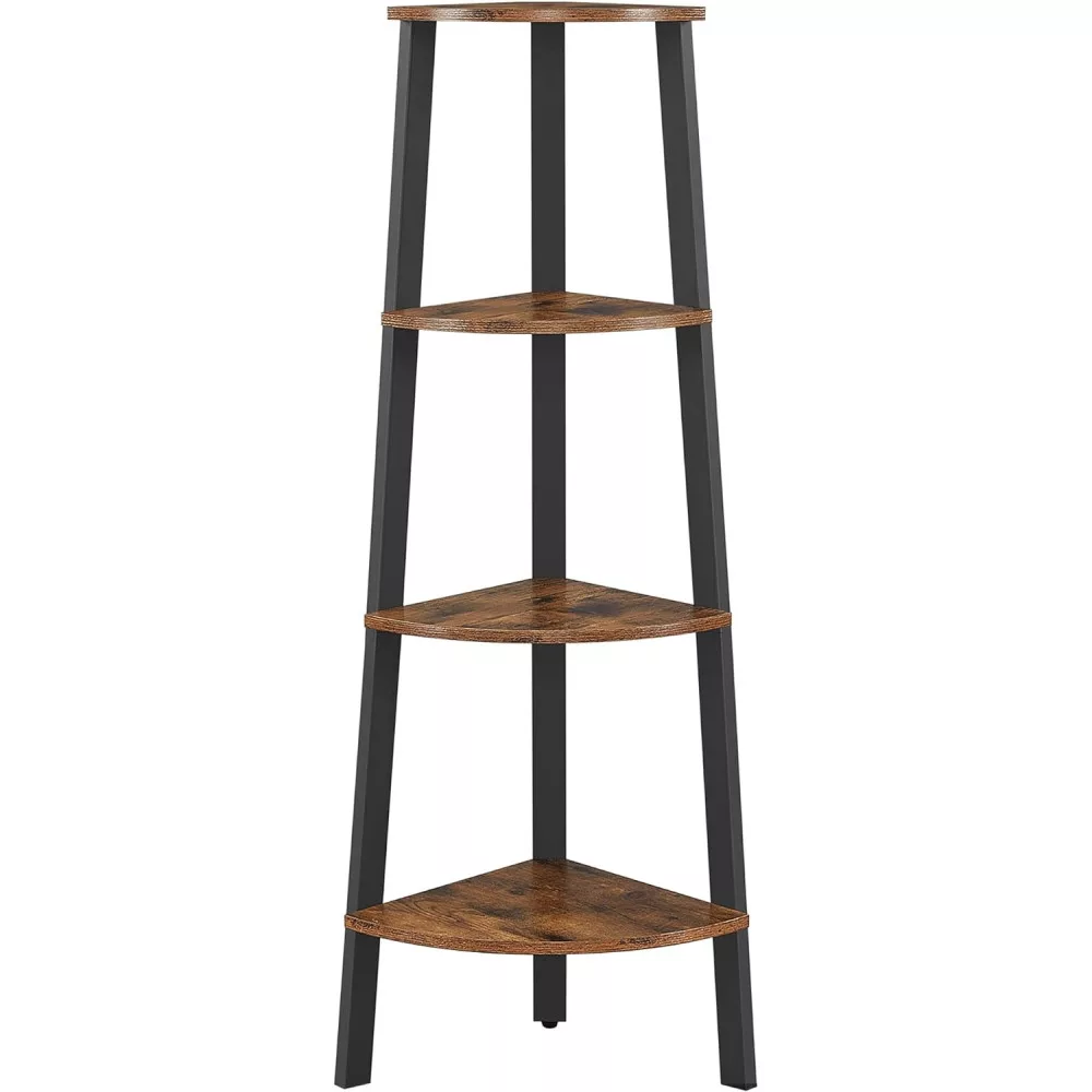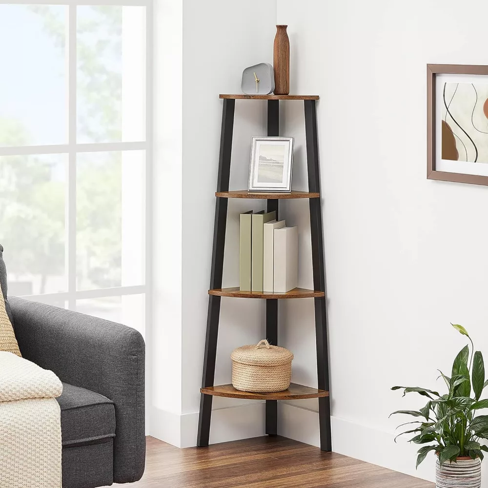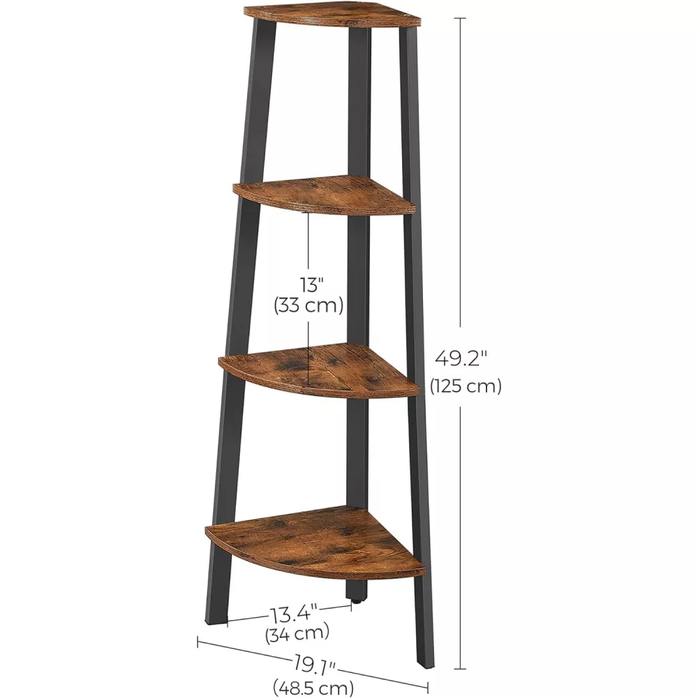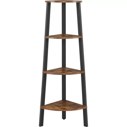 VASAGLE Sarokpolc, 4 szintes ipari tároló állvány, létrás könyvespolc, szervező egység