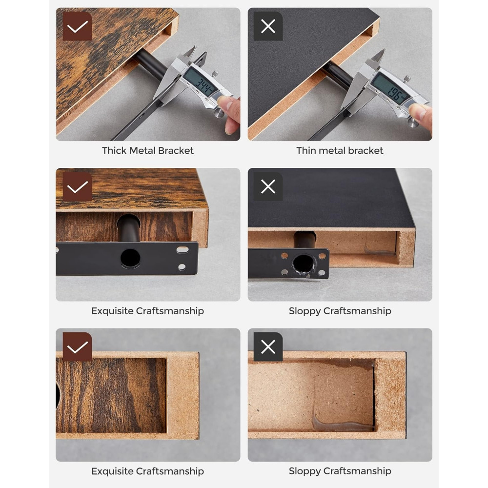 Egyszerű Összeszerelés: Ha a VASAGLE-nek lehetne középső neve, az a Kényelem lenne. Számozott alkatrészekkel, részletes útmutatóval és néhány egyszerű lépésben készen áll, hogy ezt a lebegő polcot pillanatok alatt összeszereld