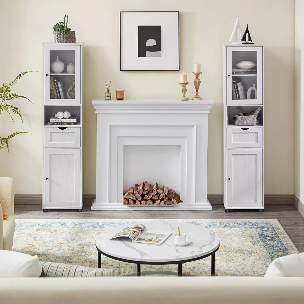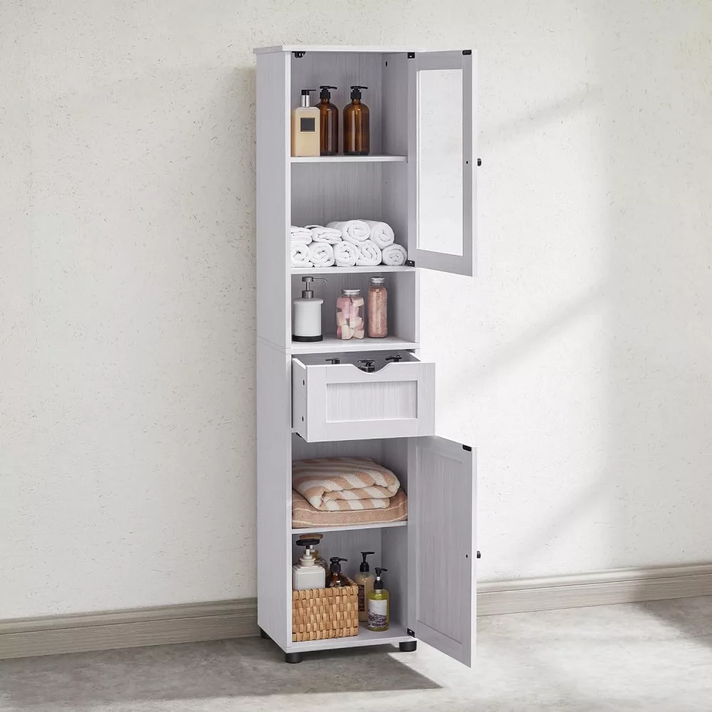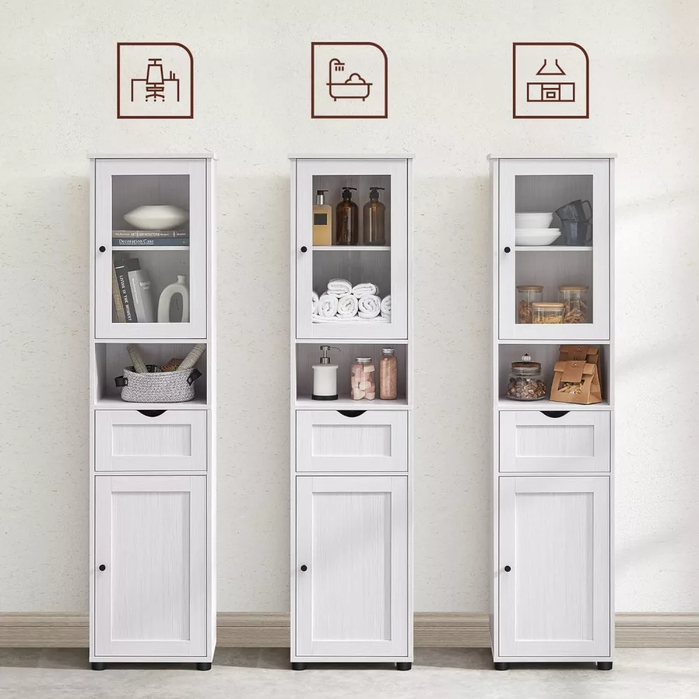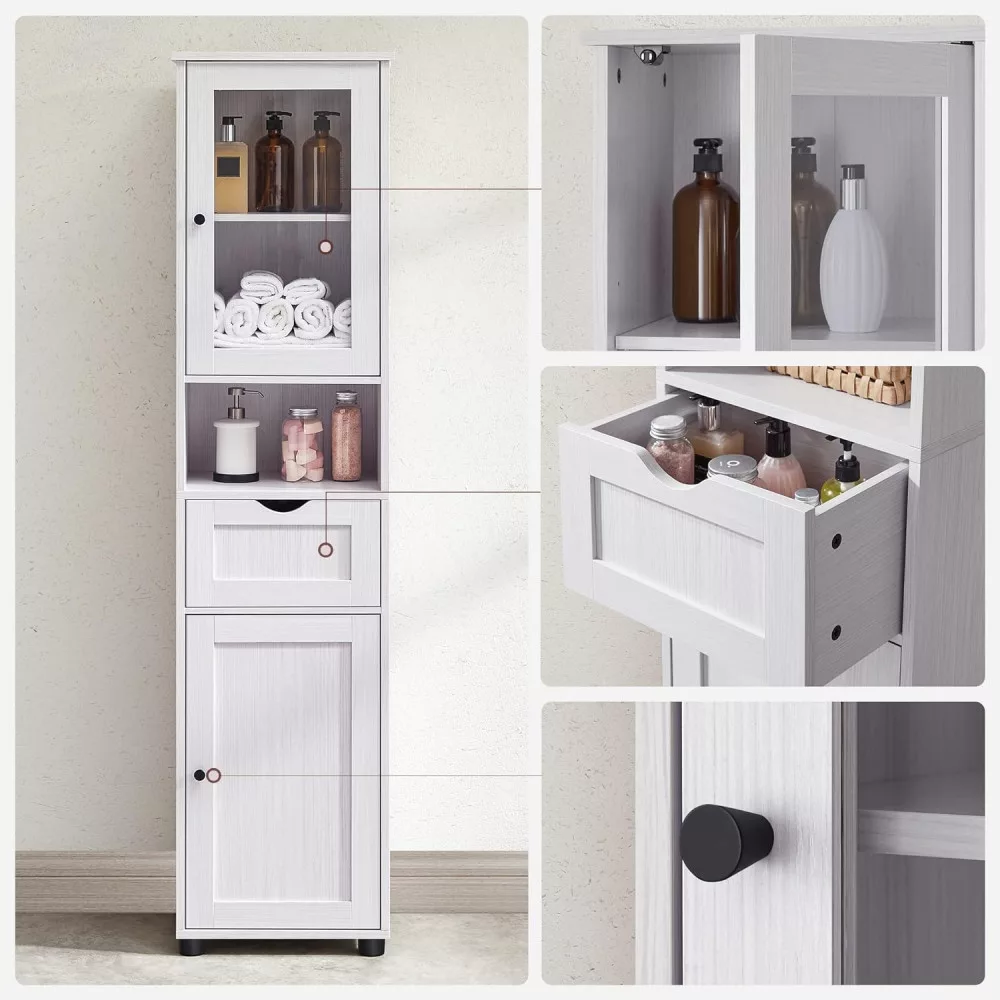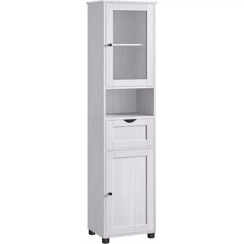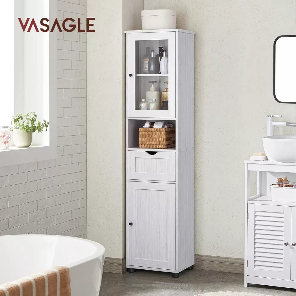 VASAGLE Fürdőszobai szekrény, oszlopos tároló egység állítható polcokkal, ajtós