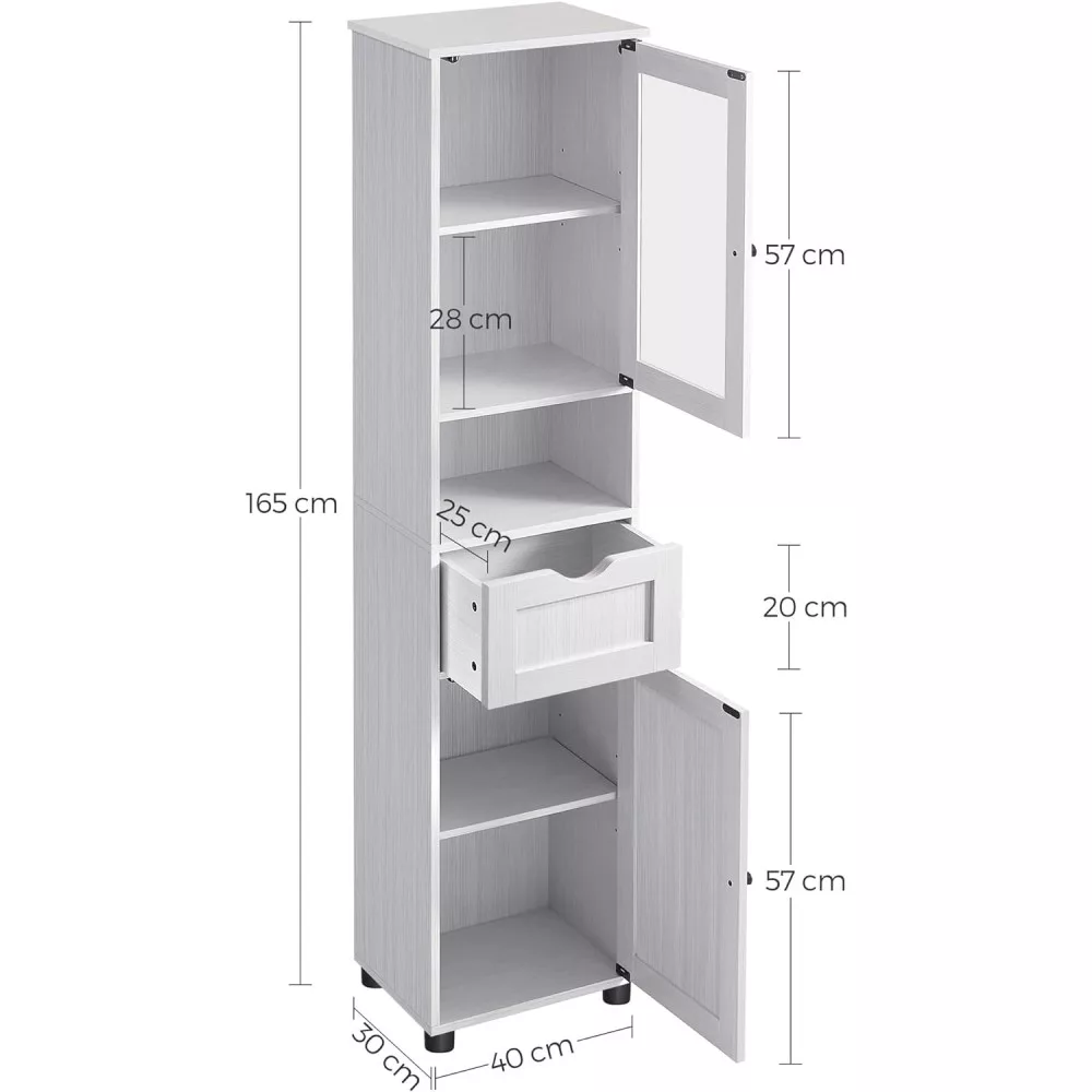 VASAGLE Magas tároló szekrény, fürdőszoba szekrény, fehér 40x30x165cm