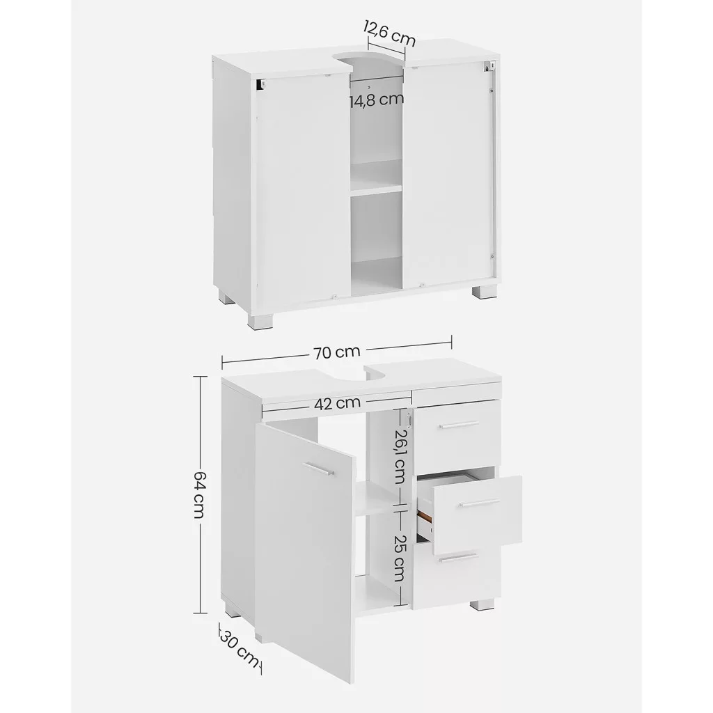 Kérjük, VEGYE FIGYELEMBE A MÉRETEKET - Szifon nyílás mérete - 20cm x 15cm / 7.8' x 5.9', Szekrény mérete - 30cm x 70cm x 64cm / 11.8' x 27.6' x 25.2' Kérjük, mérje meg a szifon és a mosdó méretét, hogy megbizonyosodjon arról, hogy ez a fürdőszobai szekrény illeszkedik.