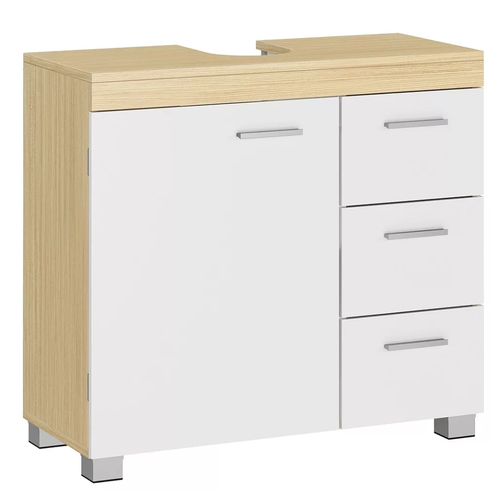 Mosdó alatti fürdőszoba szekrény, 3 fiókos, 1 ajtós, felhő fehér és természetes bézs,