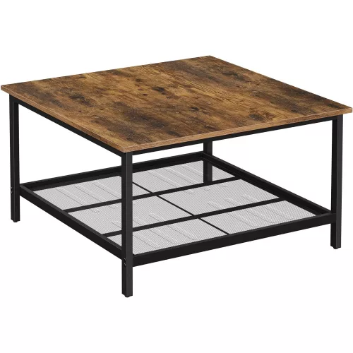 VASAGLE Négyzet alakú dohányzóasztal, rusztikus barna 80x80x45cm