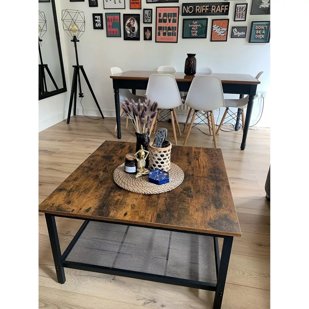 Mit kapsz: Egy 80 x 80 x 45 cm-es dohányzóasztalt, amely robusztus acélkerettel és minőségi forgácslappal készült a VASAGLE INDESTIC kollekciójából, hogy újraértelmezd a nappalidat.