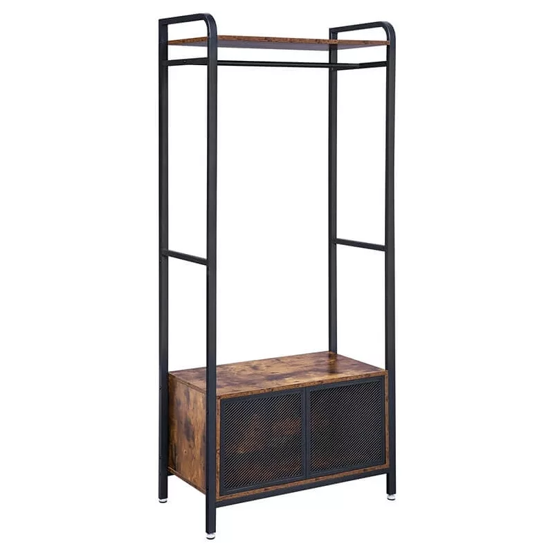 Nyitott ruhafogas, ruhatároló, rusztikus barna és fekete 80x40x180cm