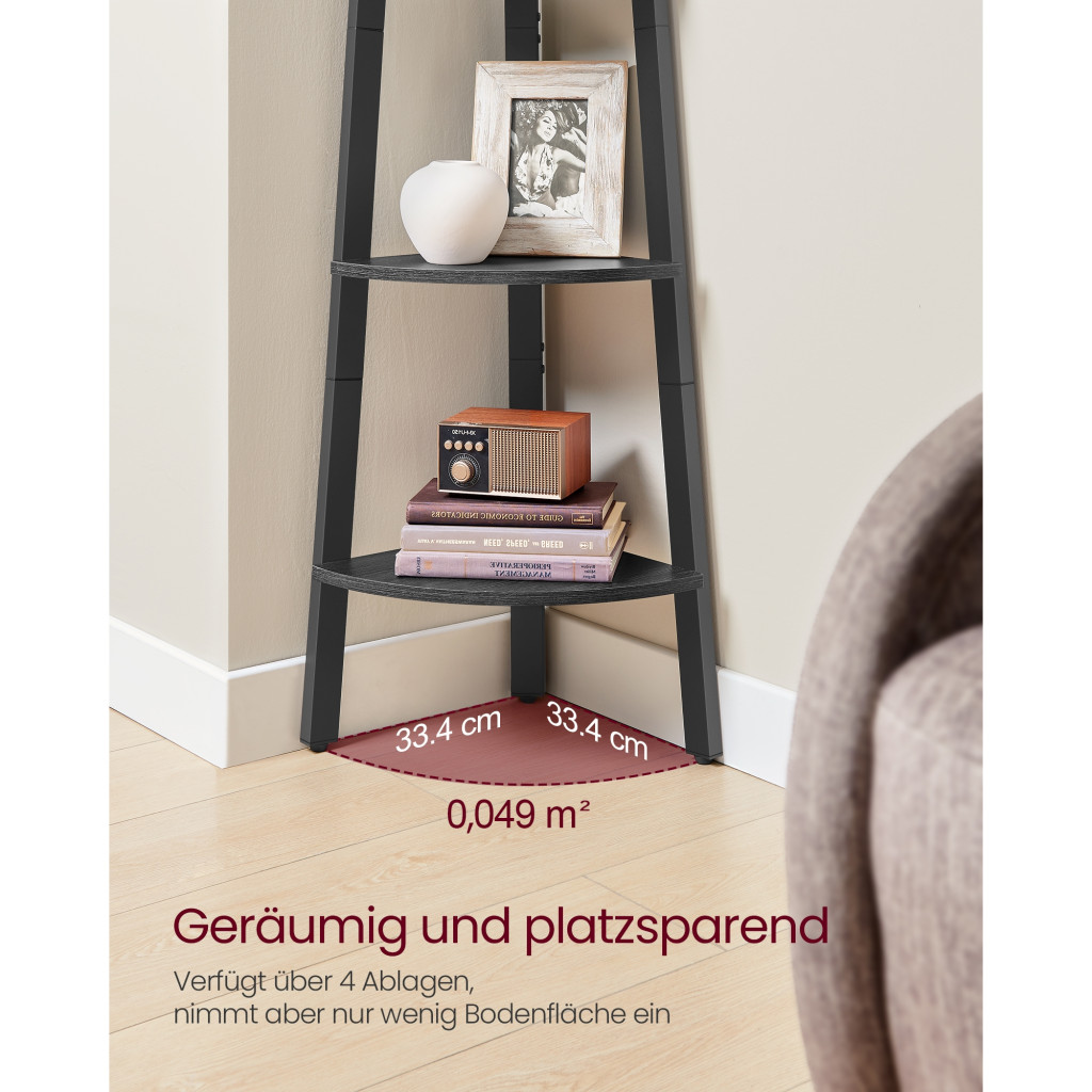 VASAGLE Sarok könyvespolc, 4 szintes, szénszürke és fekete 33x33x124cm