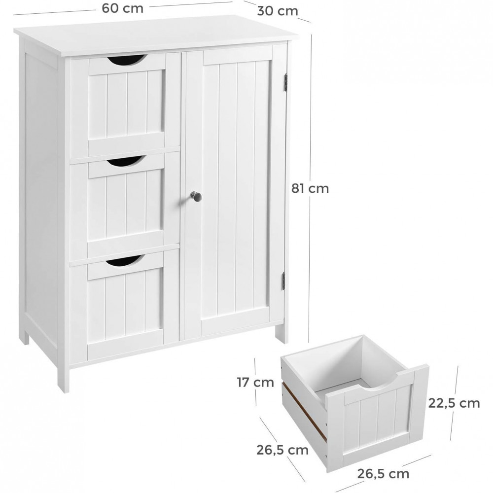 VASAGLE Fürdőszoba szekrény, ajtós, 3 fiókos szekrény, fehér 60x30x81cm