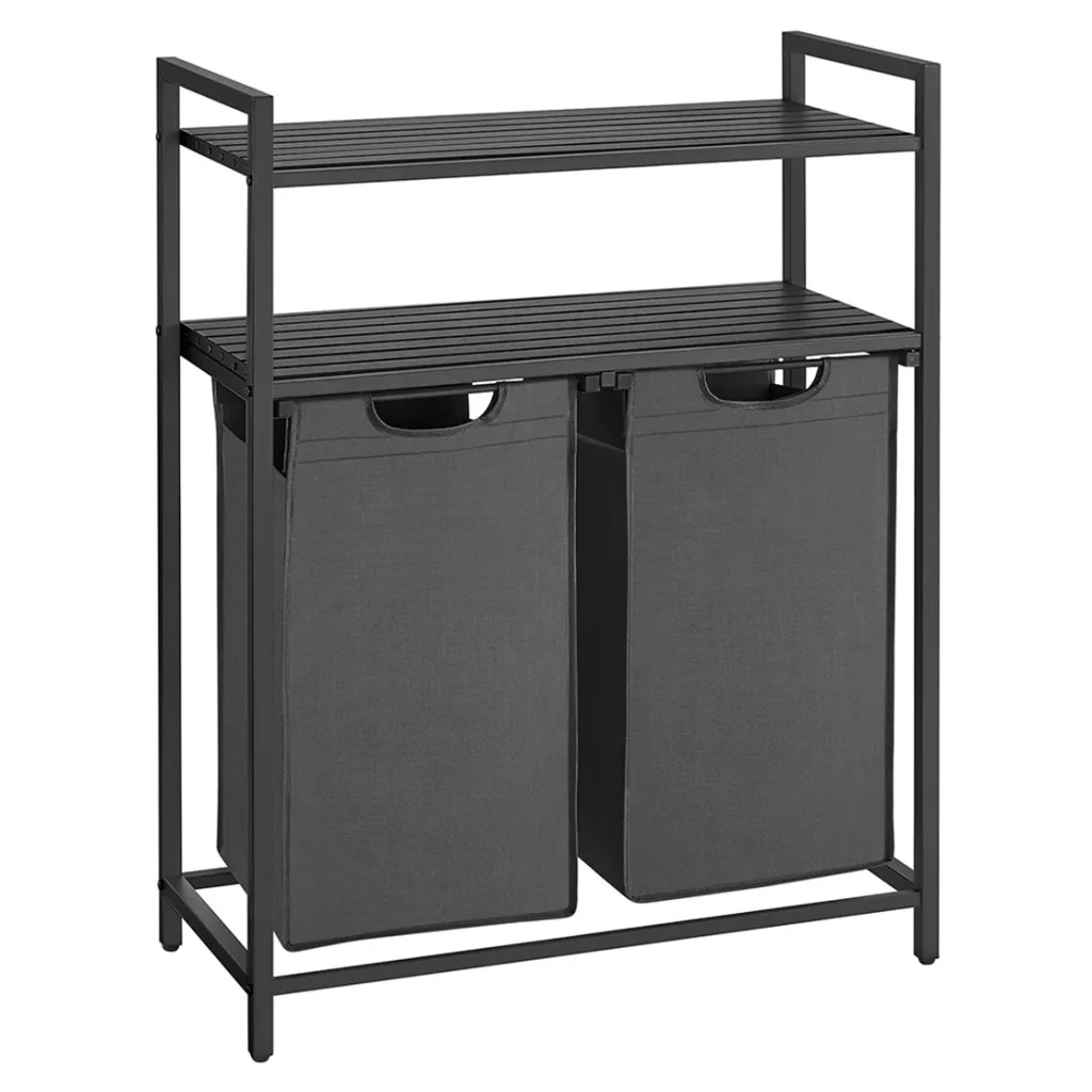 VASAGLE Szennyestartó 2 Rekesszel, Szennyestartó Polcokkal, Szennyesszortírozó,