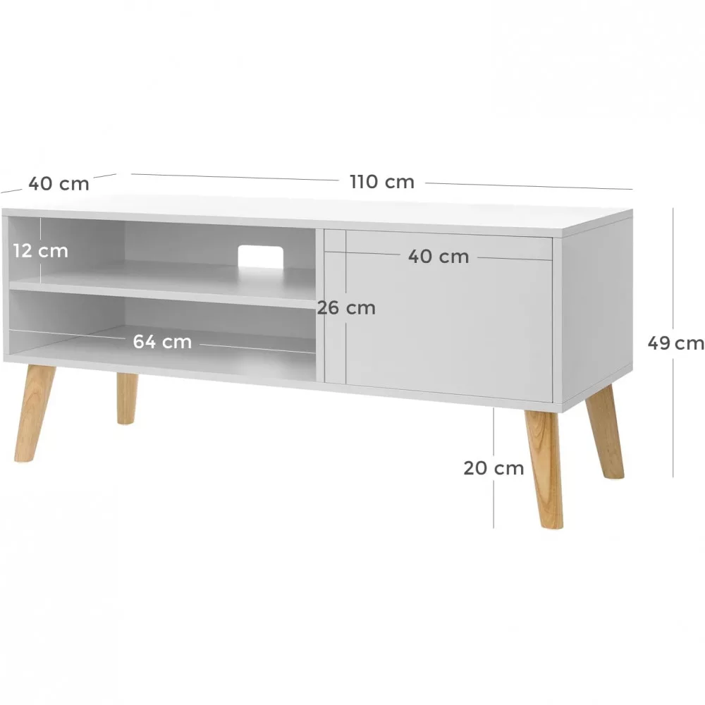 VASAGLE TV szekrény ajtóval és polcokkal, fehér 110x40x49cm