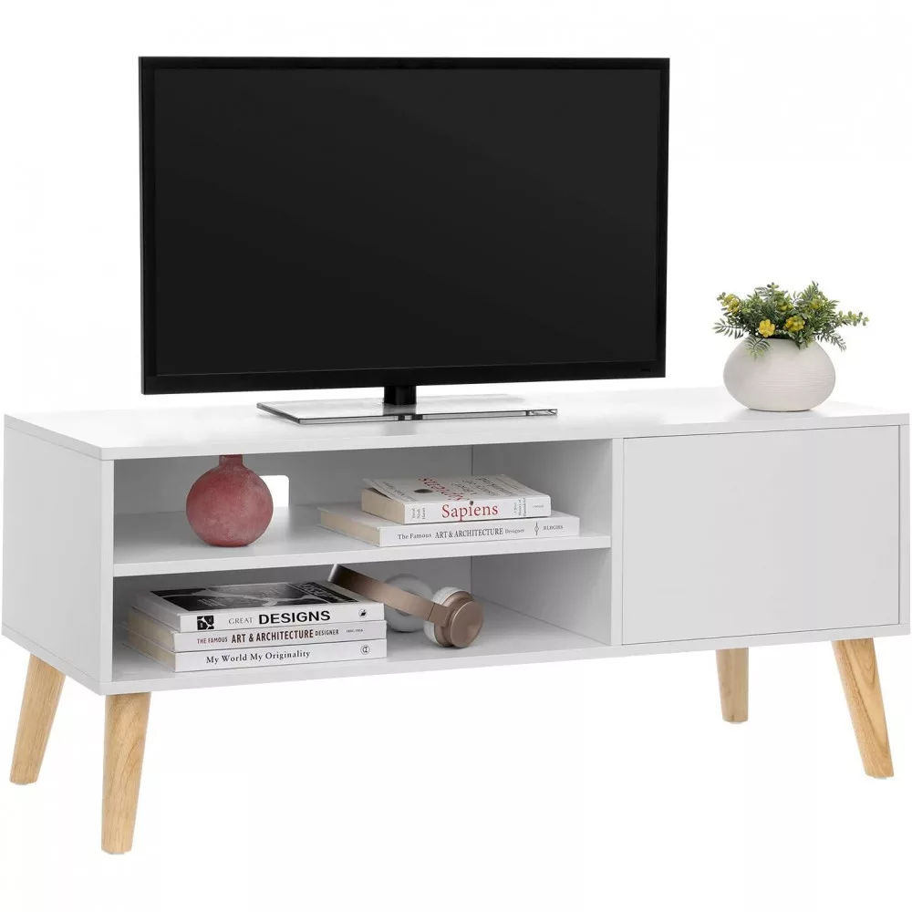 TV-szekrény ajtóval és polcokkal, fehér 110x40x49cm