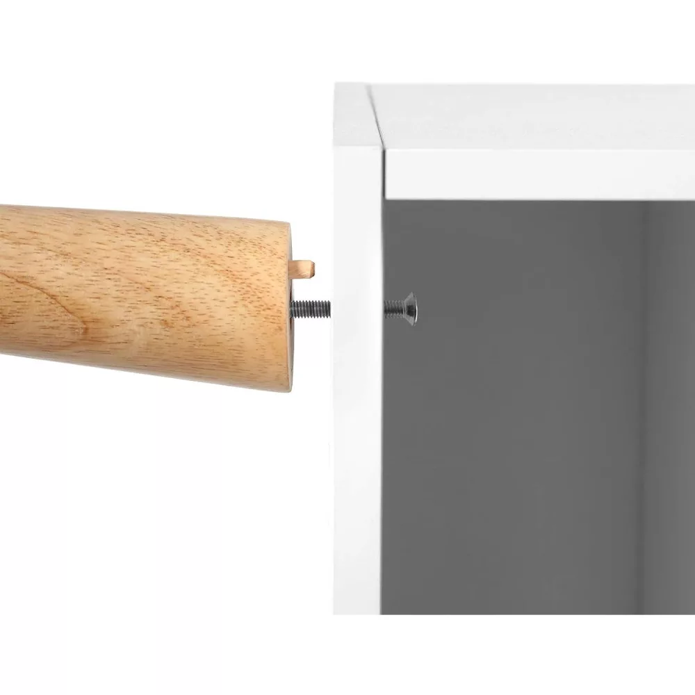 A minőség nem veszik el: Ennek a nordikus modern TV konzolnak a ferde lábai tömör gumifából készültek, amelyeket csavarok és fa csapok támogatnak a nagyobb stabilitás érdekében; a tartós forgácslap kerettel ez a szórakoztató központ akár 50 kg-ot is elbír.