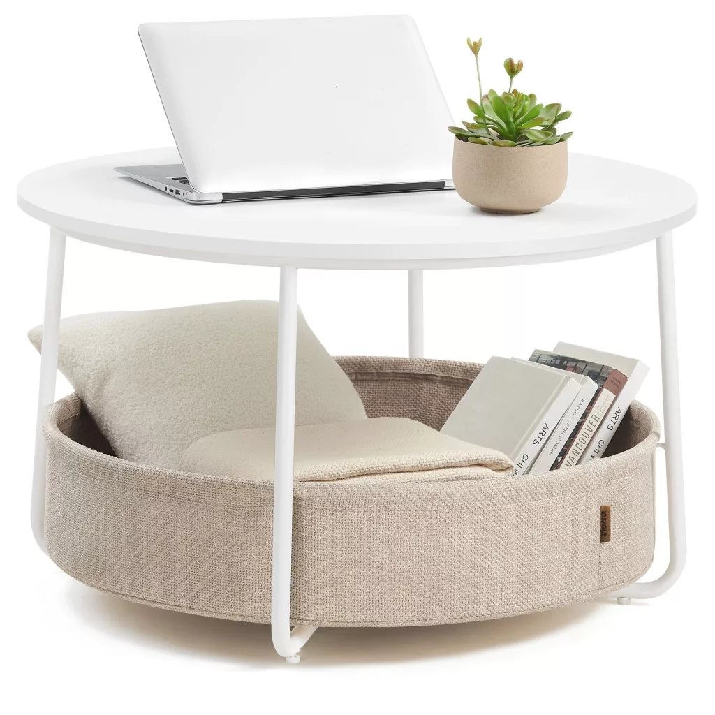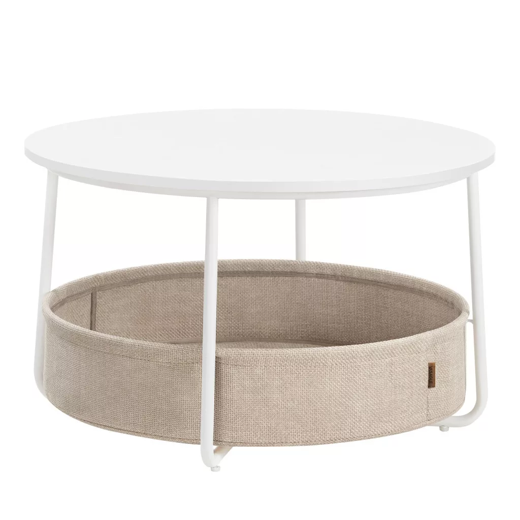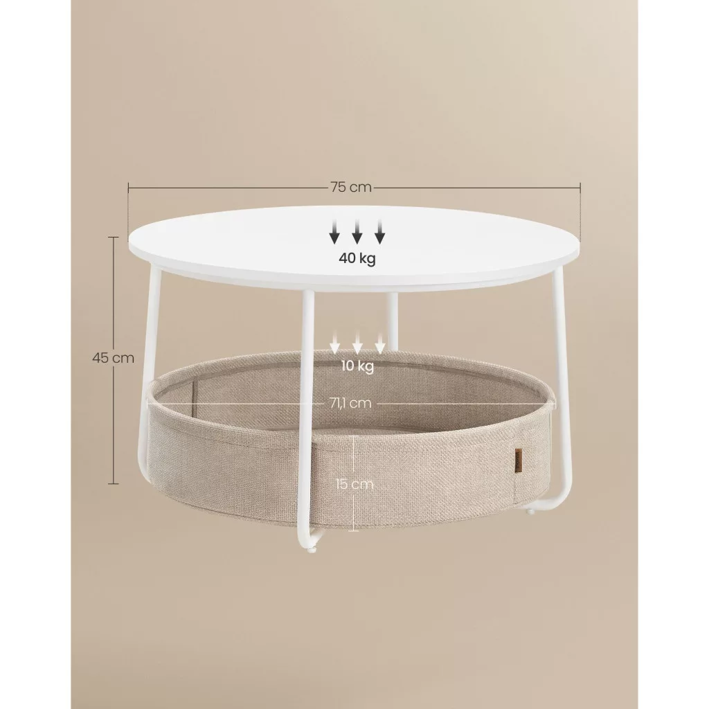 Modern esztétika:A kerek asztallap és a szövetkosár minimalista, modern esztétikát képvisel, lehetővé téve, hogy ez a nappali asztal könnyedén elegáns funkcionalitást adjon otthona dekorációjához.