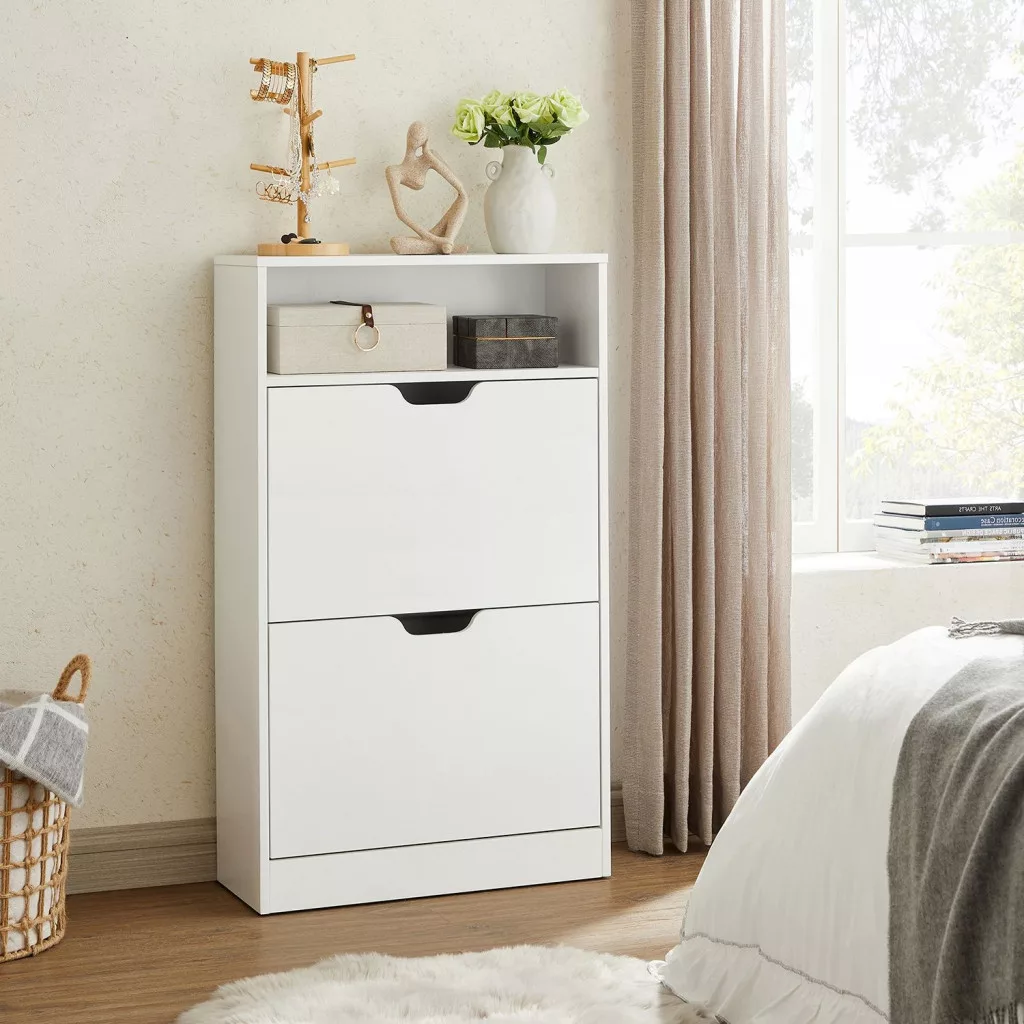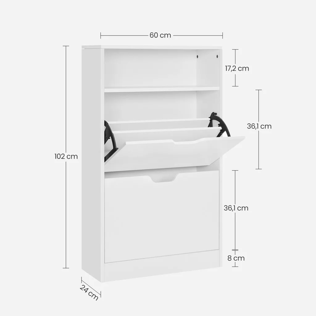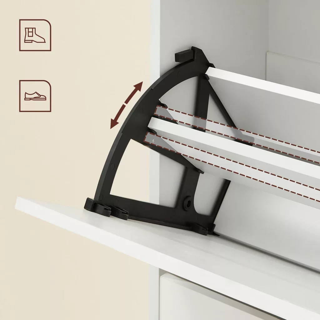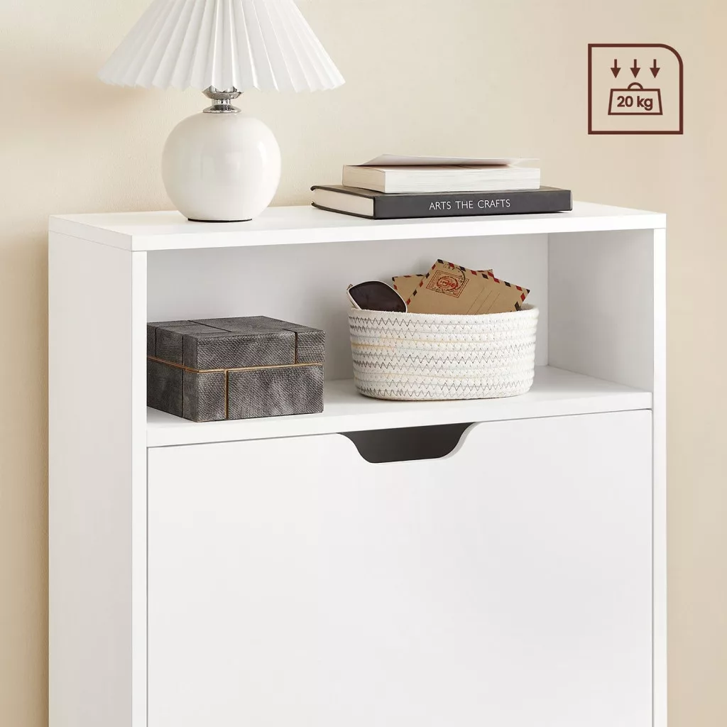 A stílus megtestesítője: helyezze cipőit ebbe a Vasagle cipősszekrénybe, és tartsa meg tökéletes állapotukat. Az elegáns fehér szín, valamint cipői tükrözik jó ízlését és személyiségét.