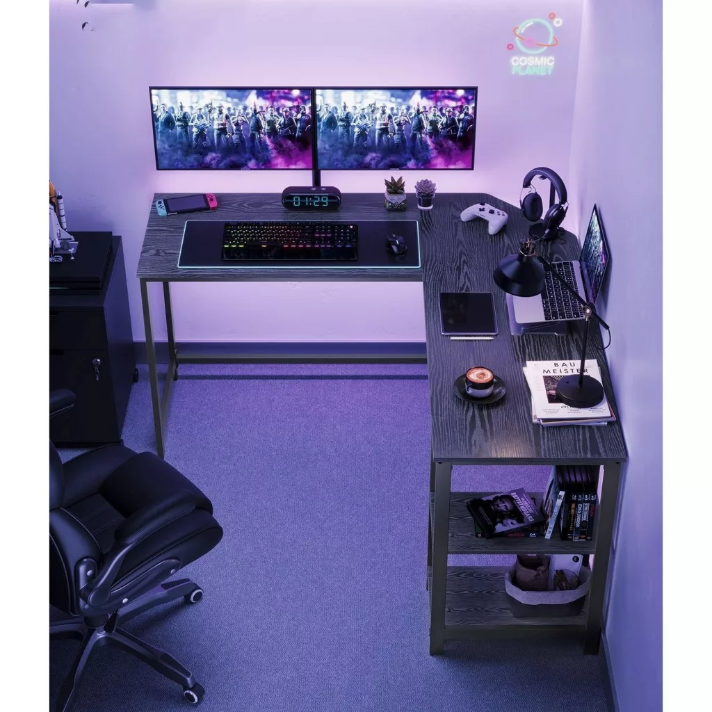 Nagy Asztallap: A 138 x 138 cm-es asztallappal rendelkező L-alakú íróasztal 3-4 számítógép monitort is elbír, és bőséges felületet biztosít a munkához vagy a számítógépes játékokhoz, így mindent kéznél tarthat