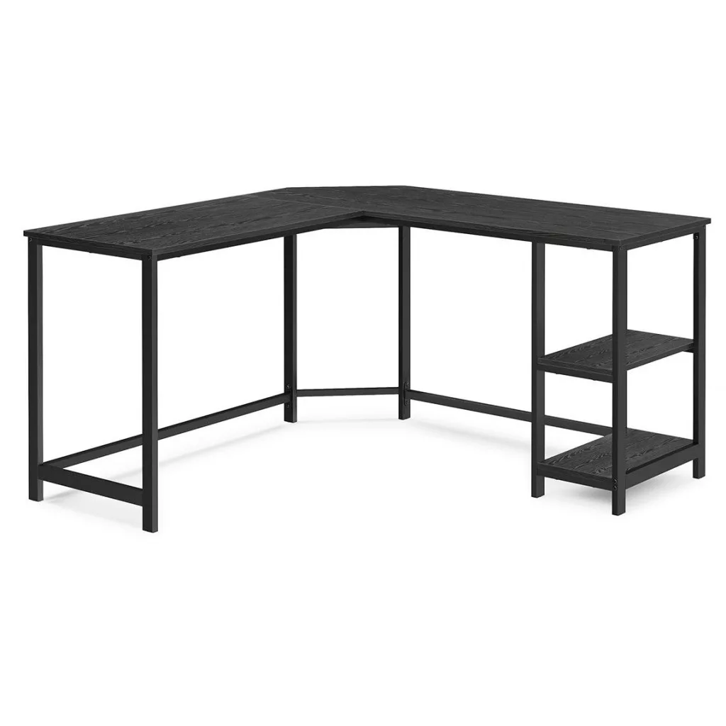 Sarok íróasztal, 2 polccal, fekete faerezetes
